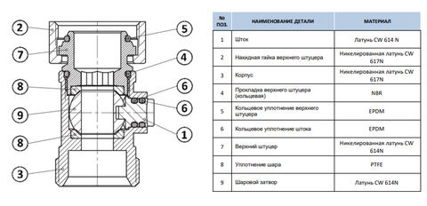 | Материал штока | латунь CW614N |