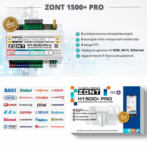 Контроллер универсальный ZONT H1500+ PRO ML00005968 для систем отопления обладает широким функционалом и подходит для контроля и управления сложными системами отопления. Данный контроллер является современной версией прибора ZONT H1000+.